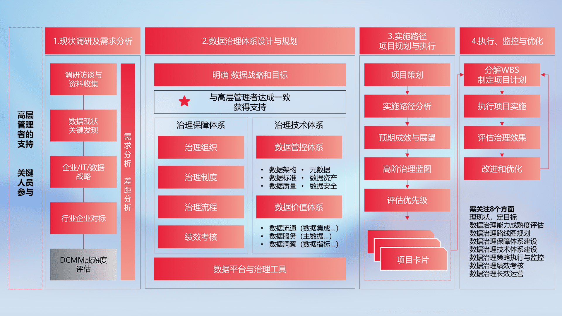 制定并执行统一的数据标准,,规范数据定义和格式,,,,消除冗余和不一致性,,,实现跨部门和跨系统的数据一致性,,为企业提供标准化的数据基础。。。。