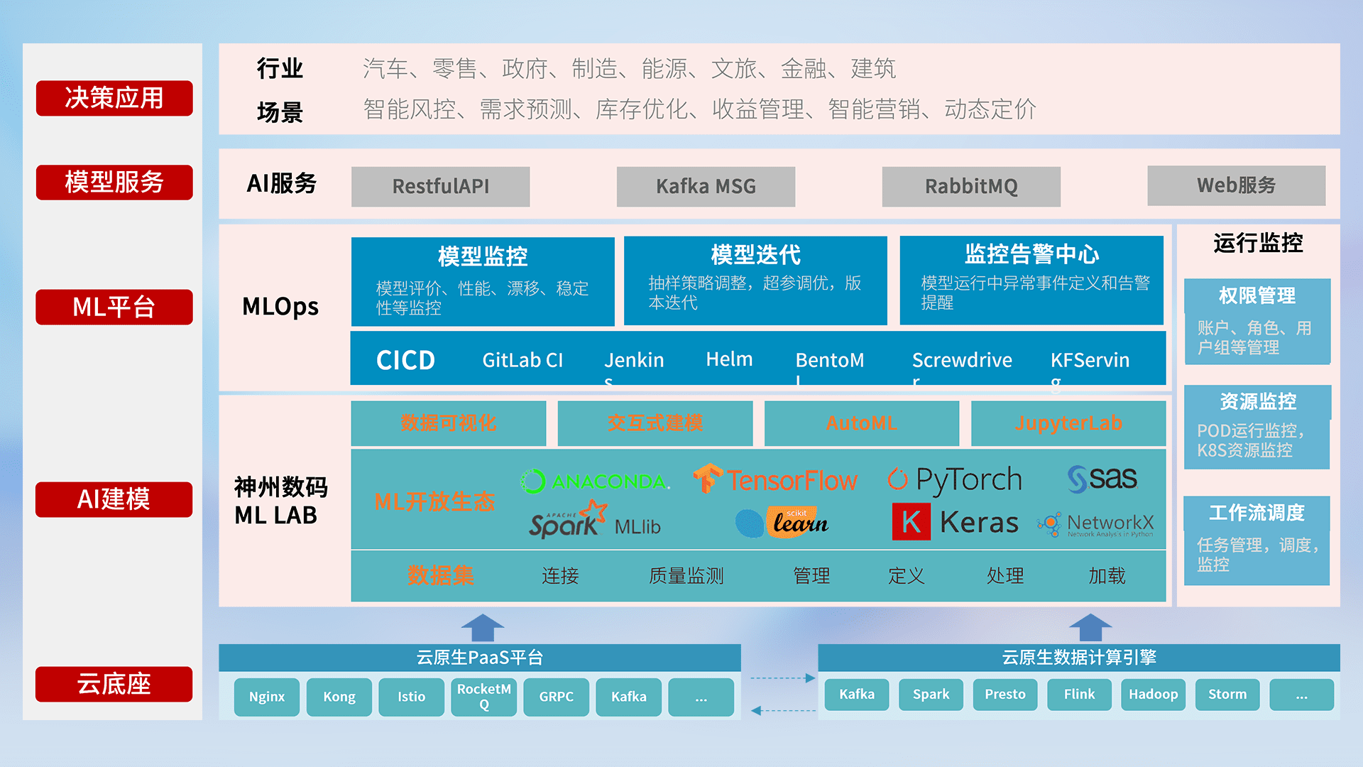 数据+模型双引擎驱动,,面向智能服务场景,,快速灵活利用AI技术,,,,支持业务决策,,,助力企业智能化转型破局。。。